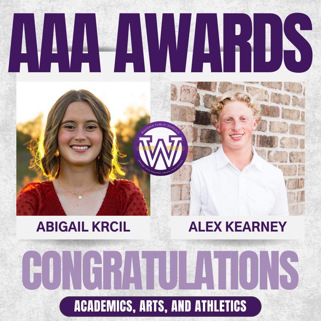 Congratulations to Waconia High School seniors Abigail Krcil and Alex Kearney, who have been named the school’s 2025 AAA Award recipients.